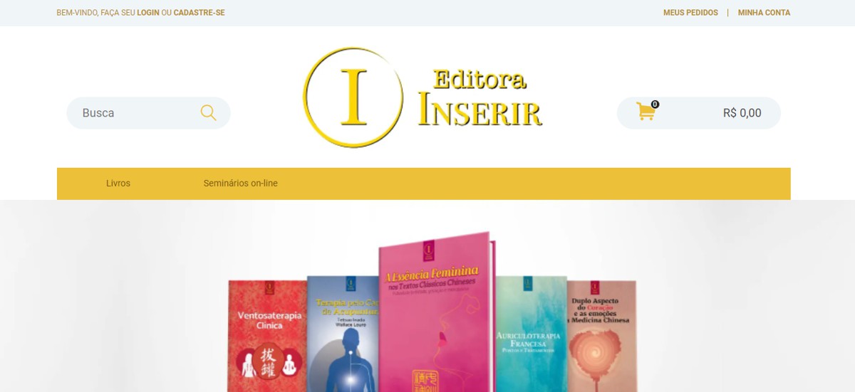 www.editorainserir.com.br - Website E-commerce responsivo criado para editora especialista em livros de acupuntura em São Paulo.